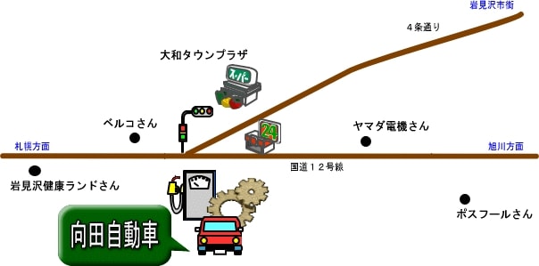 「株式会社 向田自動車」岩見沢市大和2条9丁目7 TEL:(0126)22-4131